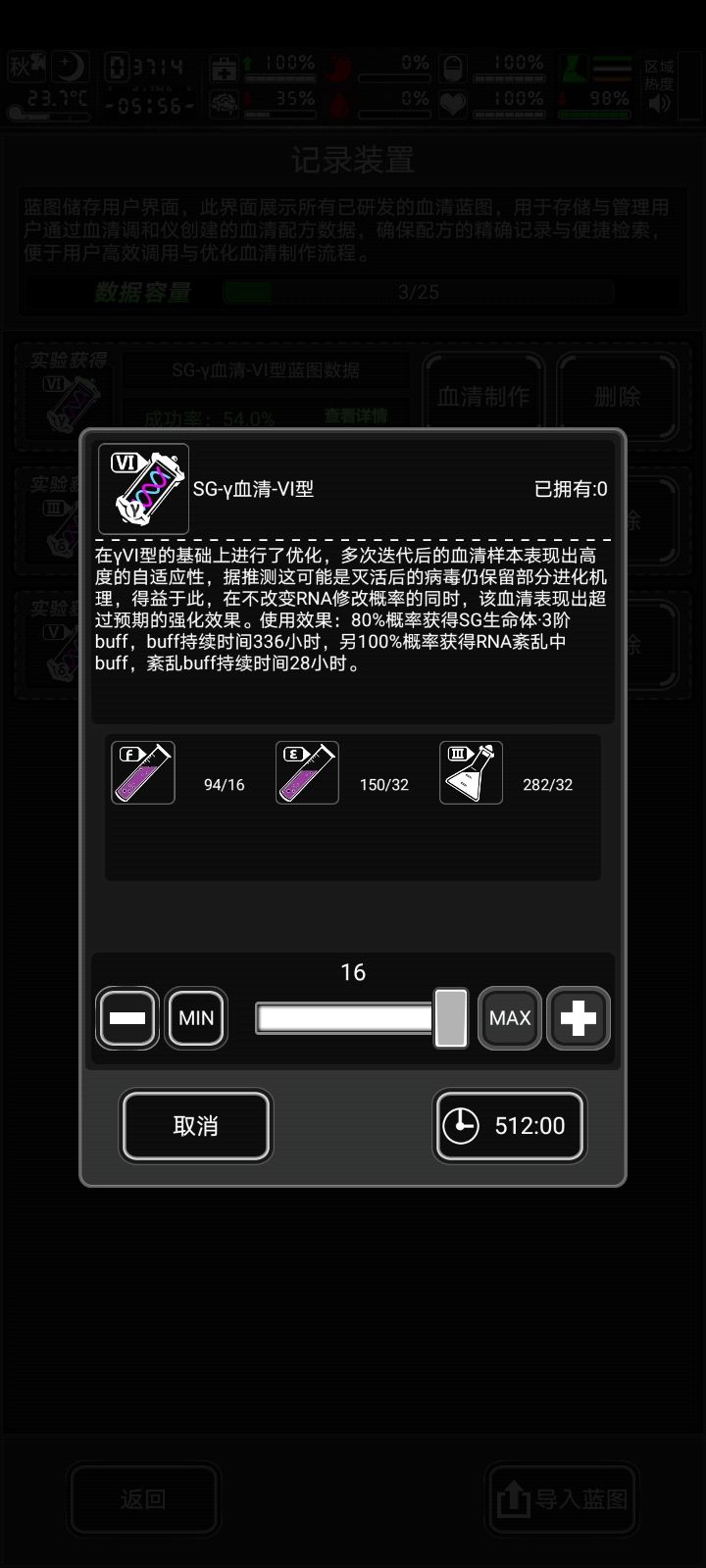 5.6变异血的获取用3级副本地图基本上可自给自足…同时也可以刷图纸配件,消耗时间差不多20分钟。爆率2-20不等。