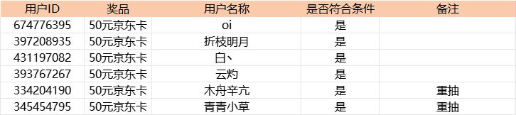 本期中奖名单(包含重抽)