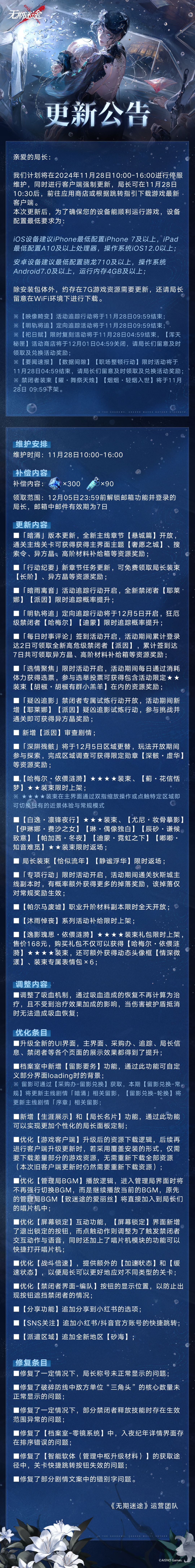 【公告】丨11月28日停服维护更新公告
