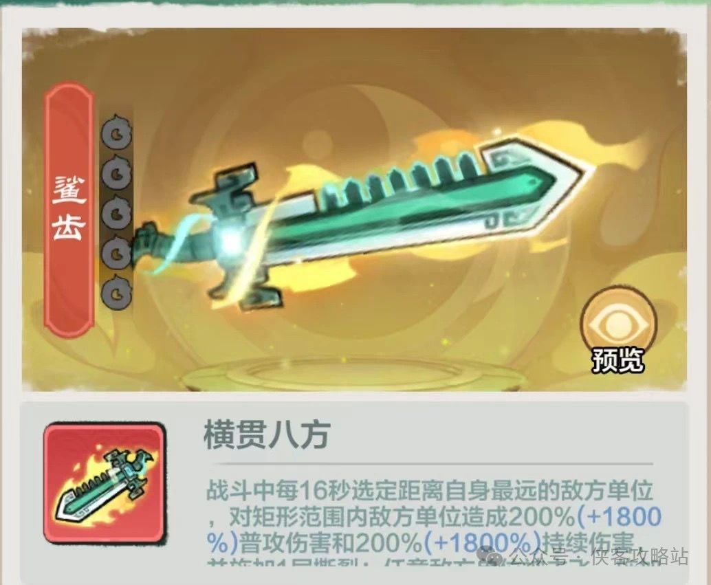 鲨齿,主要是为了搭配坐骑和阵容,击飞效果来减少CD;