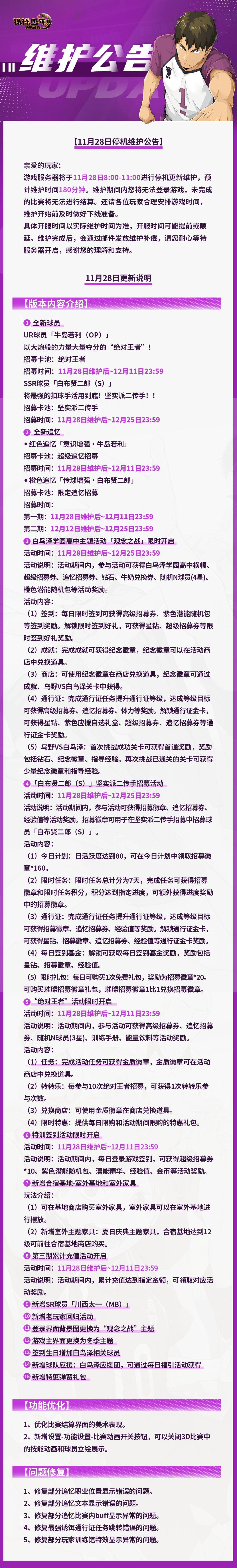 🎊11月28日更新维护公告🎊