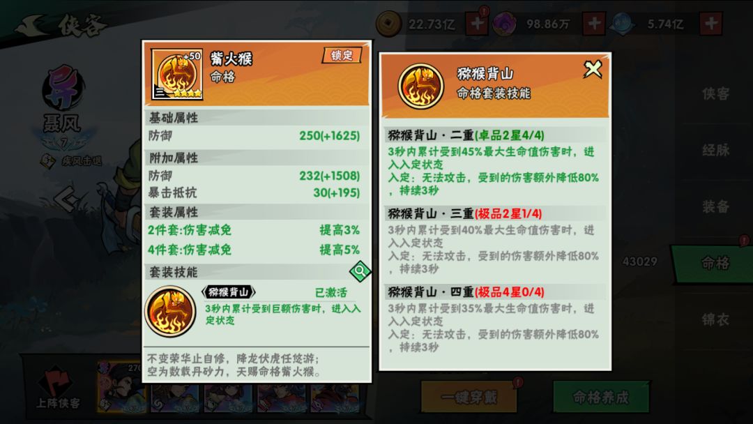 鸡是纯增加防御力百分比。一般情况下,用鸡不如用猴,猴在逆风局中坚挺很多。群友不喜给聂风上猴,原因是猴入定后不再出手,不出手就延迟了各种增益,且失去套盾带来的减伤收益。但鸡的效果全程有效,且与魔化无冲突。
