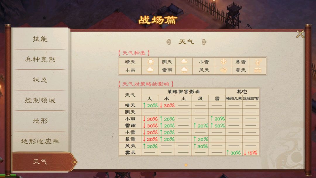 第三点便是策略辅助因素的区别,例如原版本中的地形、天气等因素在新版曹操传中也有继承,而笔者也简单算了算,例如原版曹操传共有22种地形,而新版本曹操传则共有30种地形,此外新版本曹操传在天气方面也会从原版的5种增加到8种,同时因为新版中的天气不仅会和各类的策略伤害息息相关,且也会和武将的攻击成功率有所关联,例如雾天之下武将的格挡几率将会提升,而远程攻击的伤害则会降低,所以在新版本中,利用不同策略因素所衍生出的变化也势必会更多,这也会给游戏带来更大的策略操作空间。