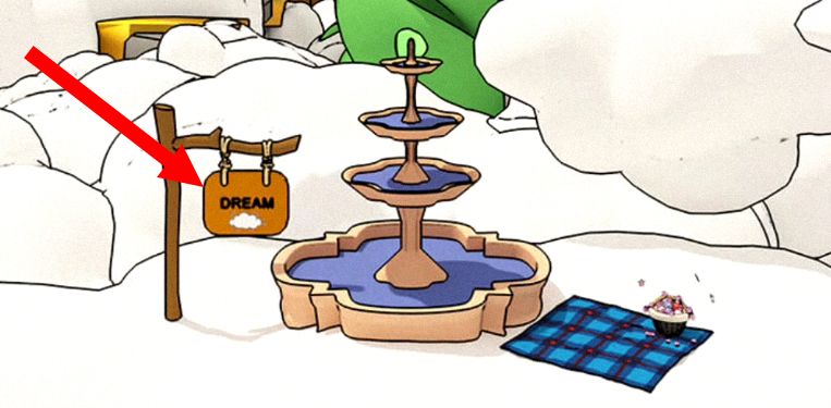 6.点击许愿池边上的牌子,获得一串英文数字【DREAM】