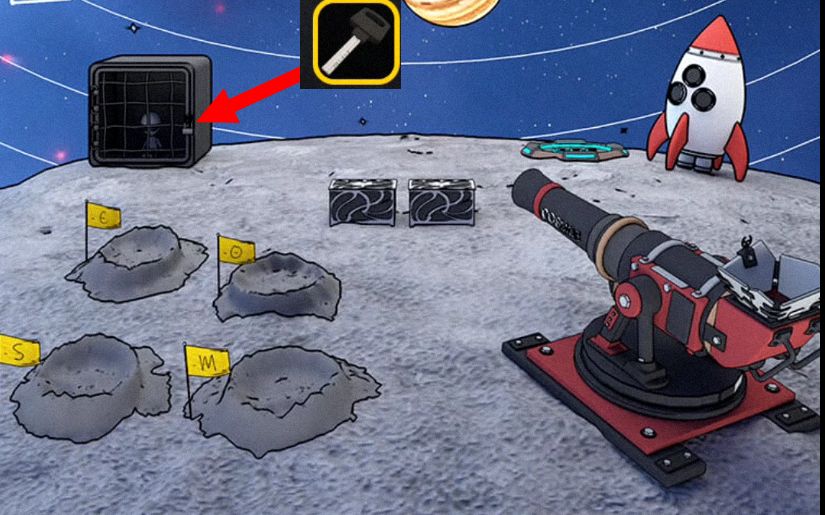 4.点击后方的运输车,根据【3】中宇航员动作和照片边框颜色的对应关系,解开车门上的机关,获得【锤子】