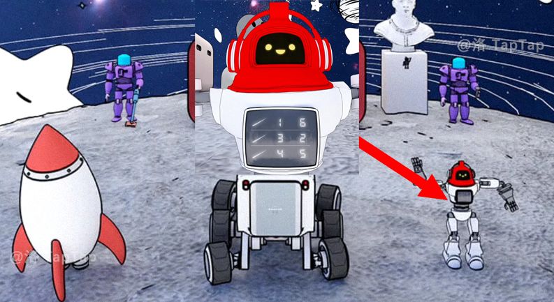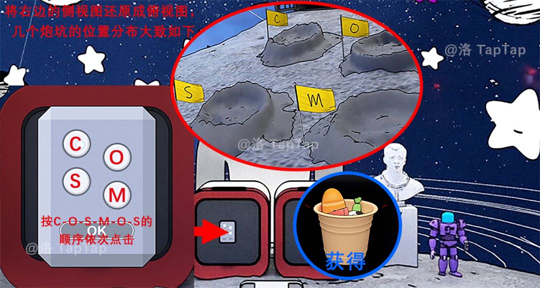 2.点击玩滑板的宇航员下方的小屋(是上方没有坐人的那个),根据【1】中线索解开门上的机关;获得【相机】