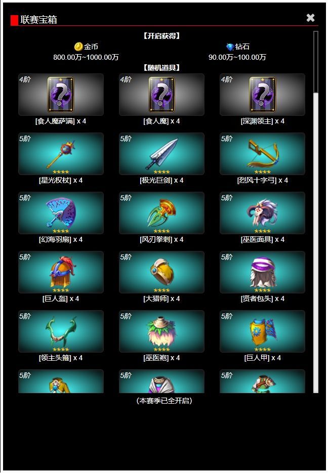 每周联赛赛季宝箱(奖励内容随联赛等级提升)