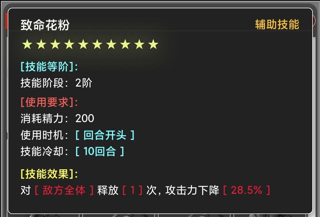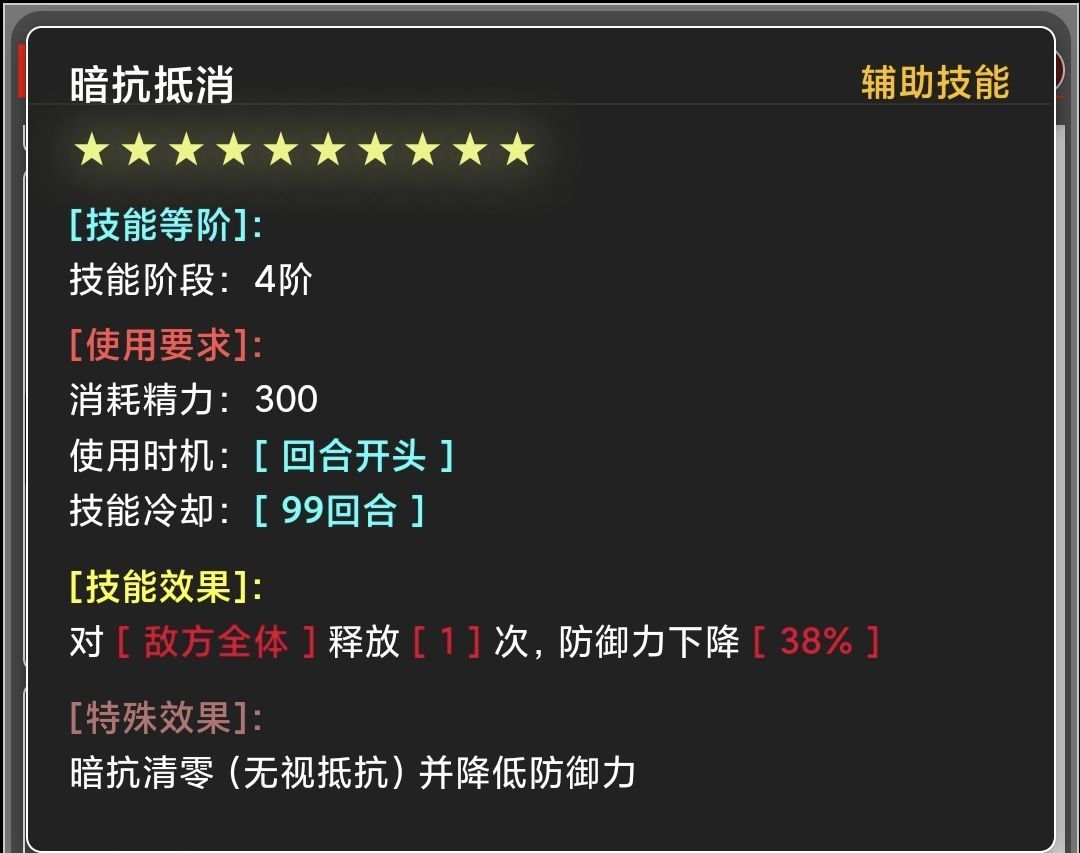 -------【辅助技能】敌方攻击&防御削弱类型-------