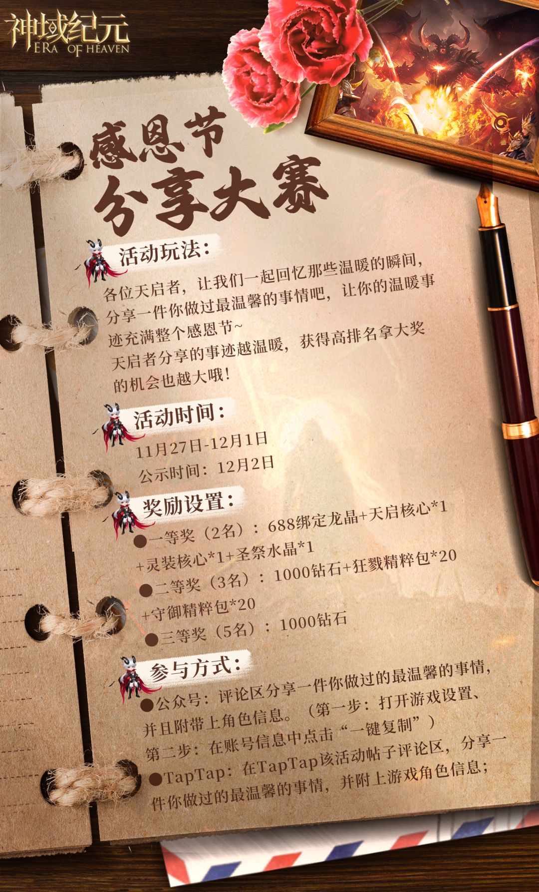 【神域纪元】官方活动 | 感恩节分享大赛温馨开启!