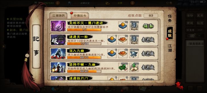 烟雨江湖 墨子成就
