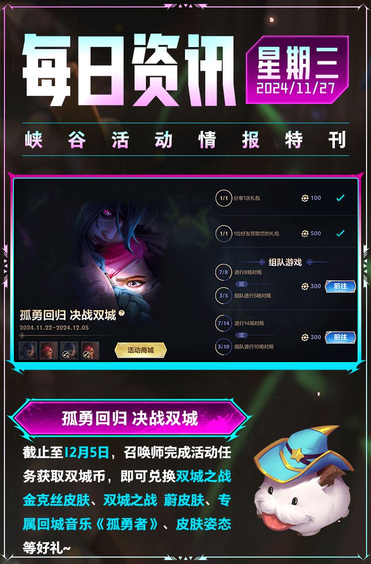 奖励:双城之战 金克丝皮肤,双城之战 蔚皮肤,专属回城音乐《孤勇者》,头像-海克斯水晶等奖励