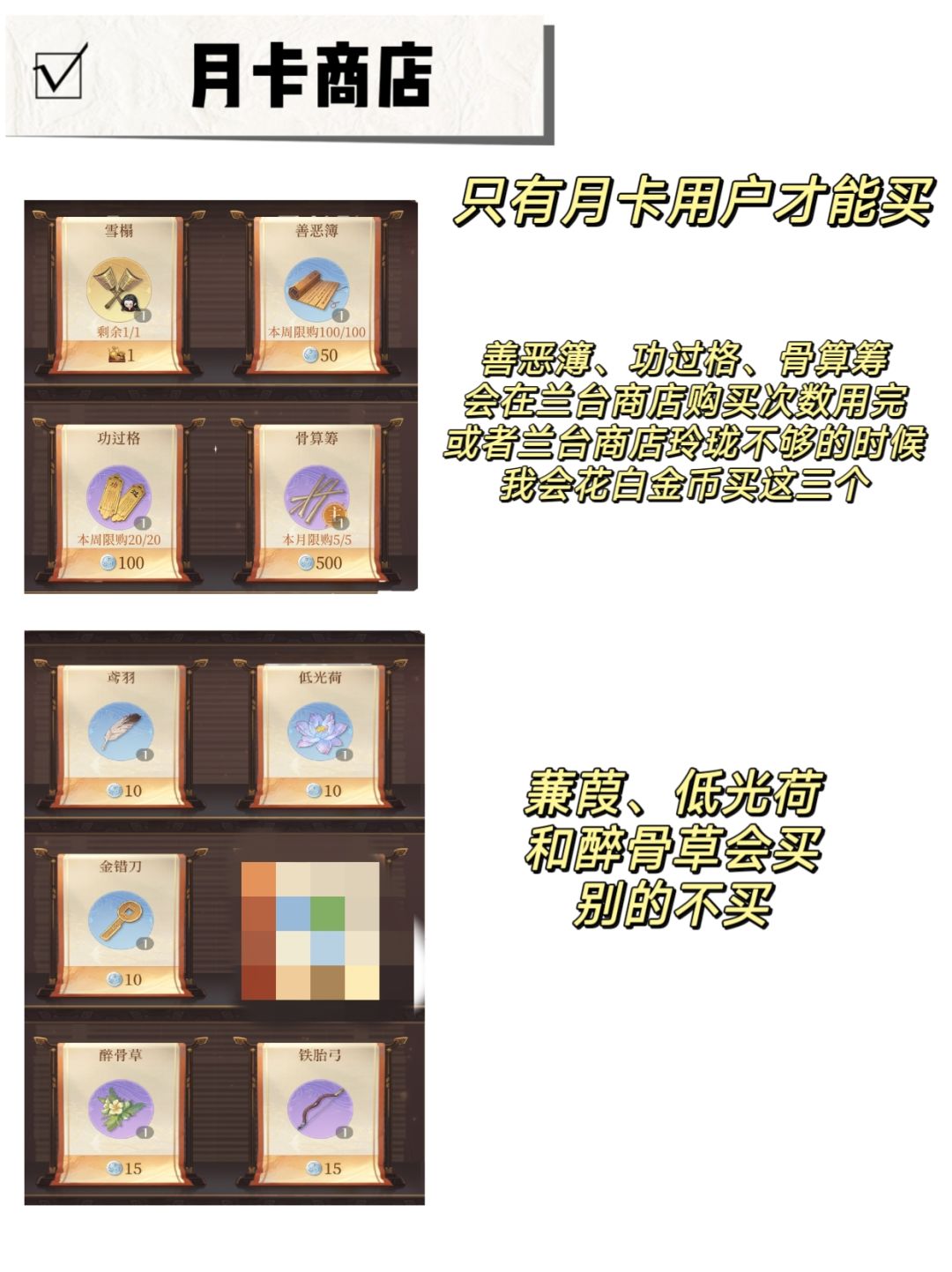 ⭕兰台商店建议这个月先不买金算筹,下一期兰台不知道什么时候再上,玲珑用完了就没了,还是省着点用