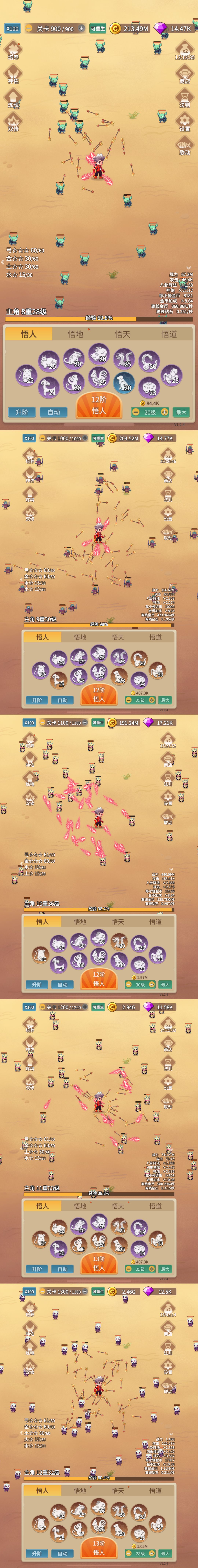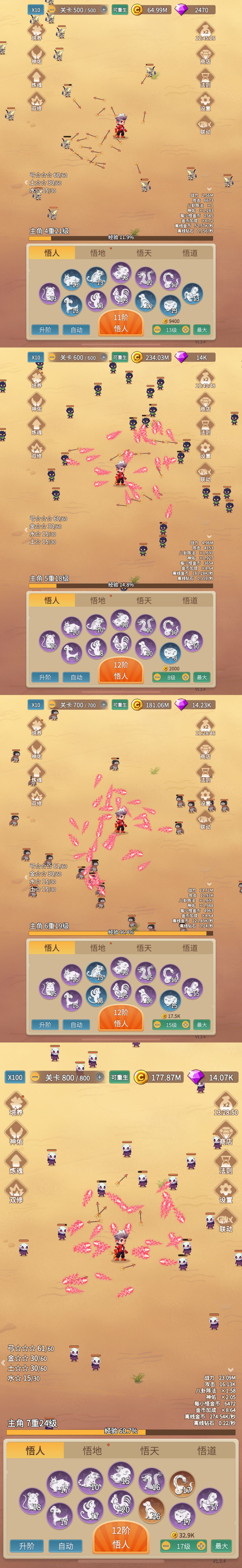5.点击悟人升到3级开启自动悟人功能,开始冲关!过关思路就是拿攻击力的同时尽量凑羁绊。