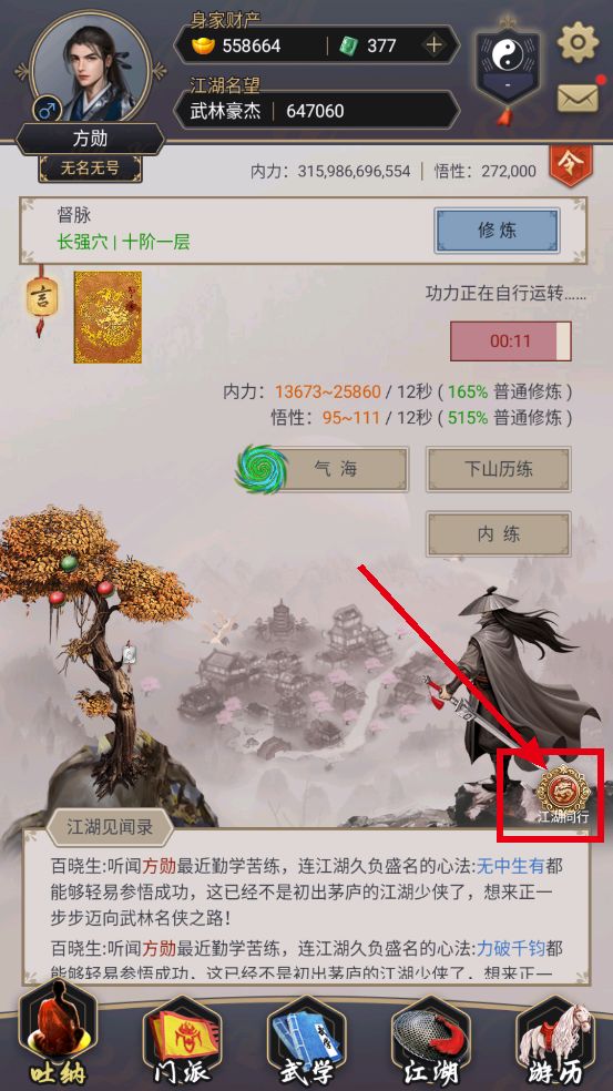 活动开启时间:2024/11/27 10:00~2024/12/21 10:00 活动入口当江湖同行活动开启后,可以在吐纳界面-江湖见闻录的右上角看见活动入口,点击入口可以参与活动。