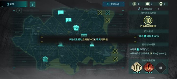 点击布防,获得P3提示。需要达到物资300。