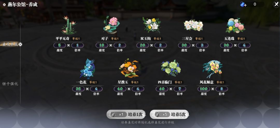 总计有九种不同牌型,每种牌型有不同的基础甜度和基础倍率值,少侠可通过在局外消耗“燕尔养花壶”提升牌型等级,提高各个牌型的基础甜度和倍率。