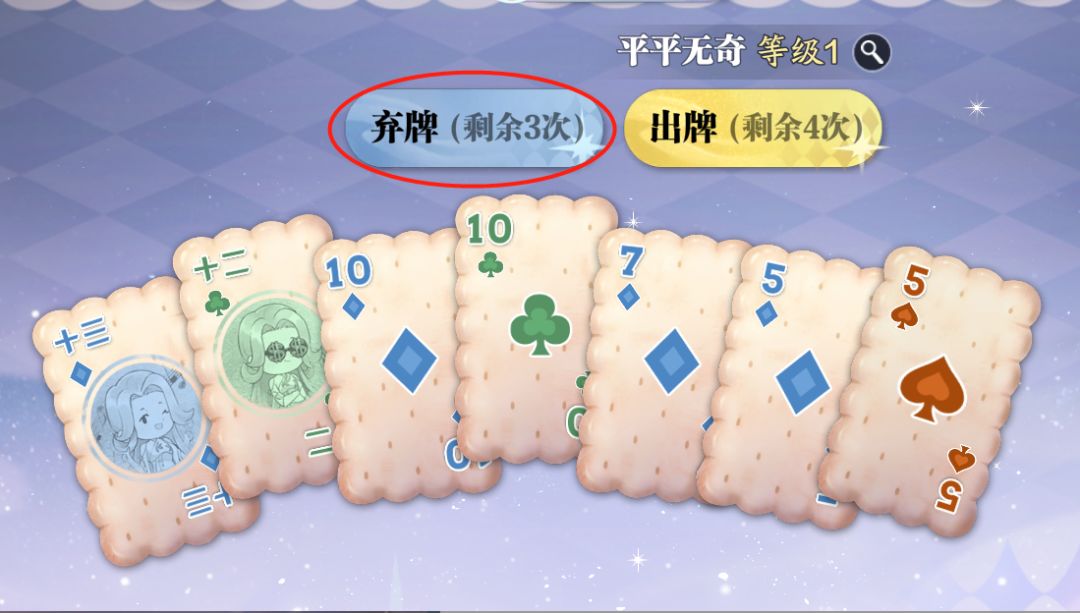 每一回合的基础弃牌次数固定为3次,部分甜品可改变弃牌次数。每次弃牌最多5张,可通过弃牌调整手牌凑出更需要的牌型或手牌组合。弃牌时不进行积分结算,但有部分甜品效果需要通过弃牌触发。弃牌后将从牌组抽取饼干牌补满手牌数量。