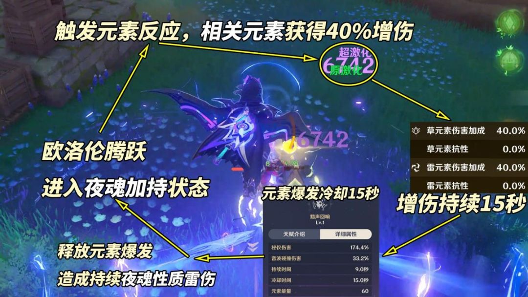 实现原理,欧洛伦入队,激活纳塔夜魂迸发规则。此时队伍任意攻击可触发夜魂迸发(单纳塔角色18秒冷却),此刻欧洛伦天赋会因此恢复40点夜魂值。