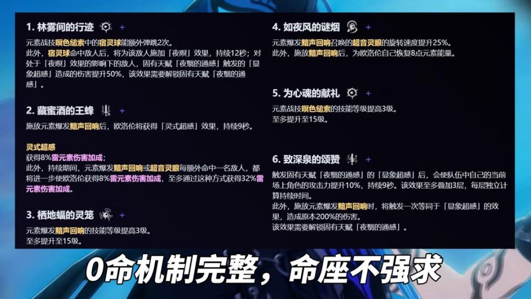 【命座建议】0命机制完整,其余命座有提升但不明显,如4命解放本就才120%充能需求的微弱压力,6命使场上角色30%攻击力加成。