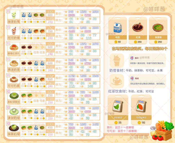 心动小镇烹饪11与12级爱好的菜谱售价来啦!