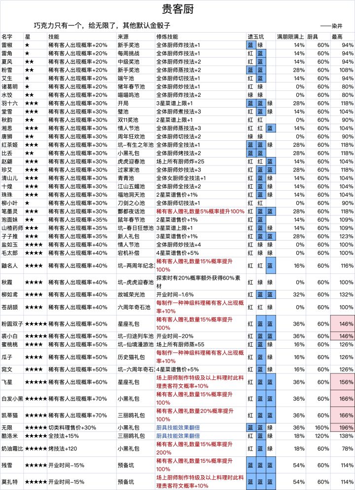 求助~想刷符文是不是组大家说的贵客队呀(挠头)没有买礼包厨师,找了攻略,这张图上我比较高且有的厨师是颜如玉,柳如鸢,加今天新池的混沌子,这是不是就是我最好的贵客队啦?就拿这三个人然后把好的厨具给她们加上就行啦?