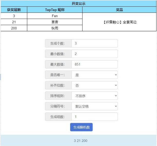 根据开奖结果显示,恭喜以下幸运的玩家们获得奖品: