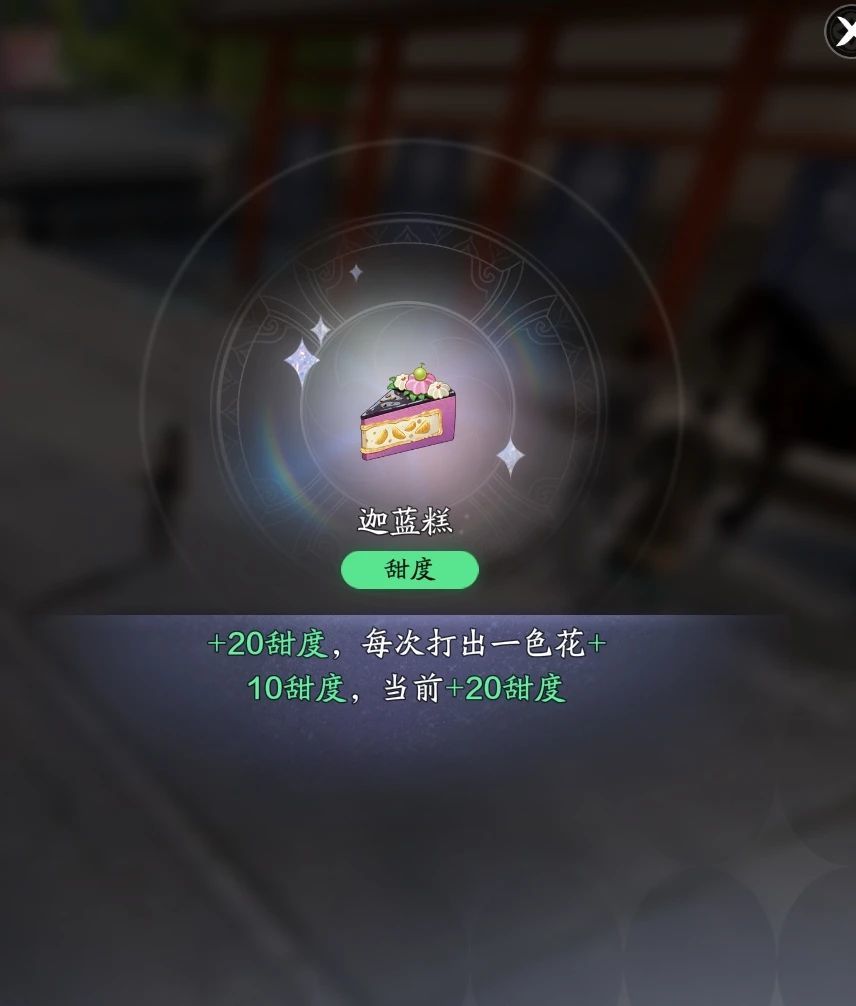 迦蓝糕(+20甜度,每次打出一色花+10甜度)