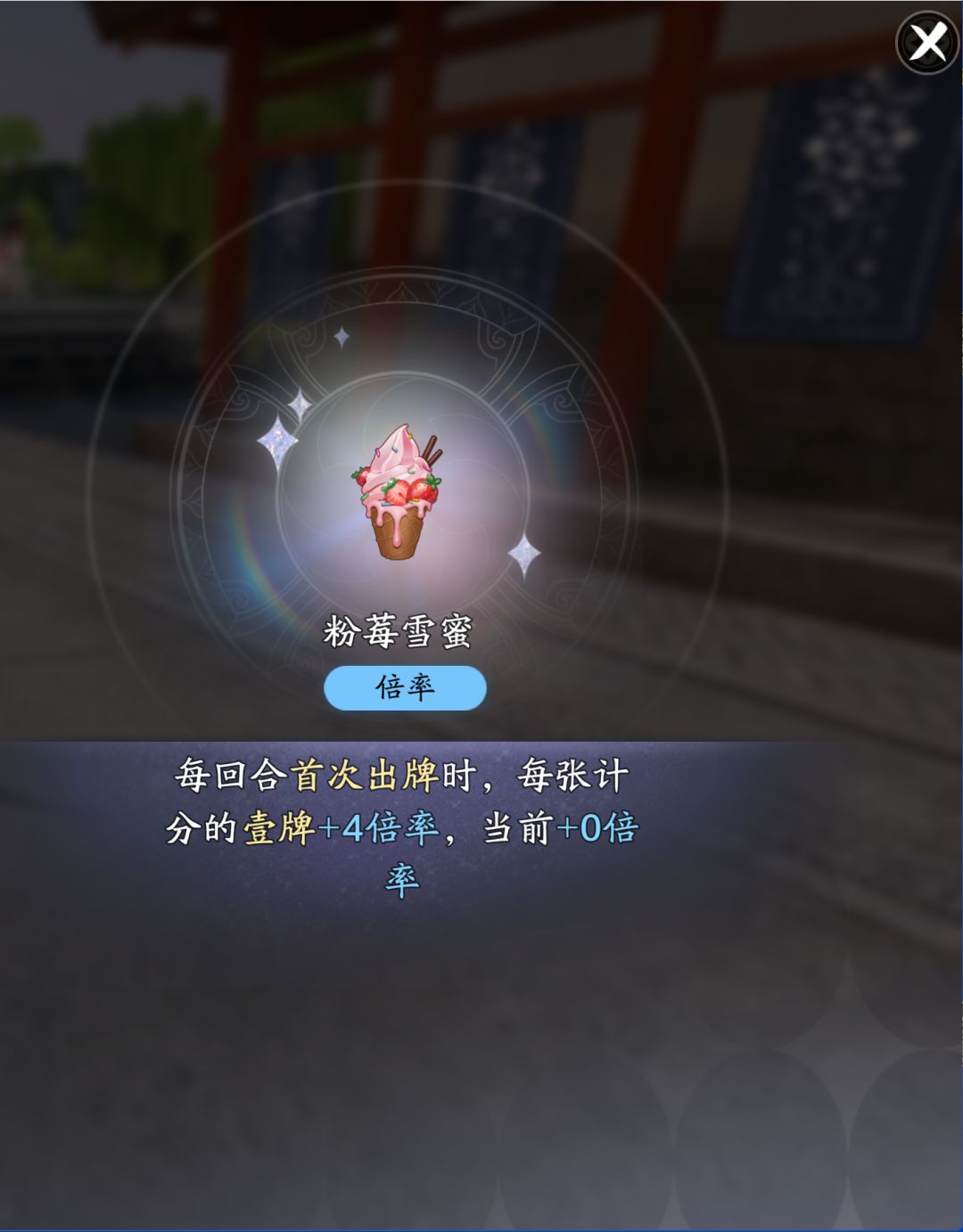 粉莓雪蜜(每回合首次出牌时,每张计分的壹牌+4倍率)