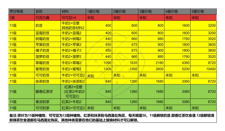 11级解锁奶昔.醇香红茶饮食谱‖12级解锁清新绿茶饮食谱都在马西莫处购买。