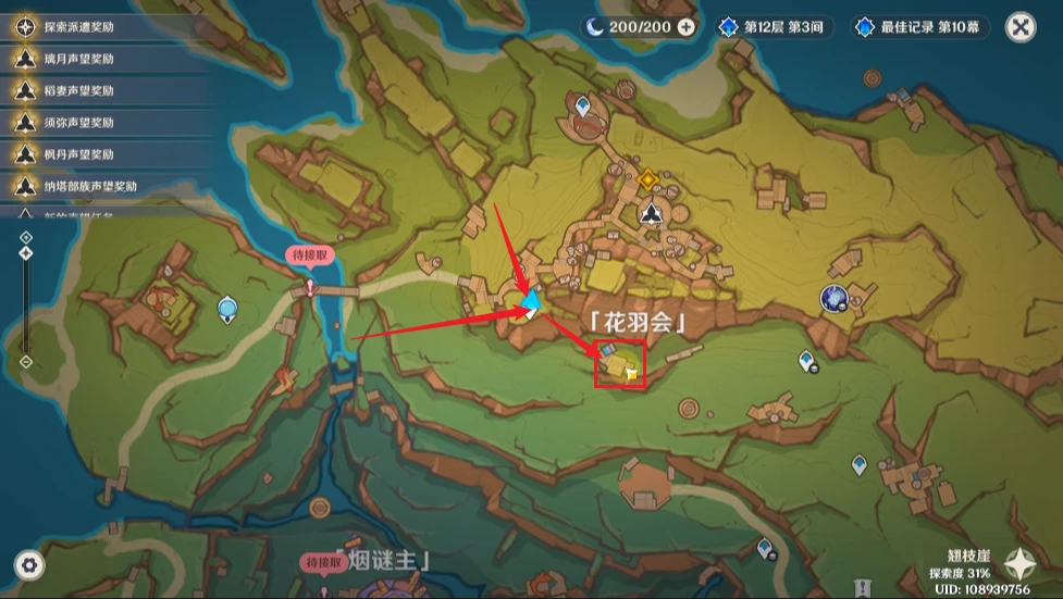 我们传送到花羽会左侧的锚点,然后前往右侧的平台