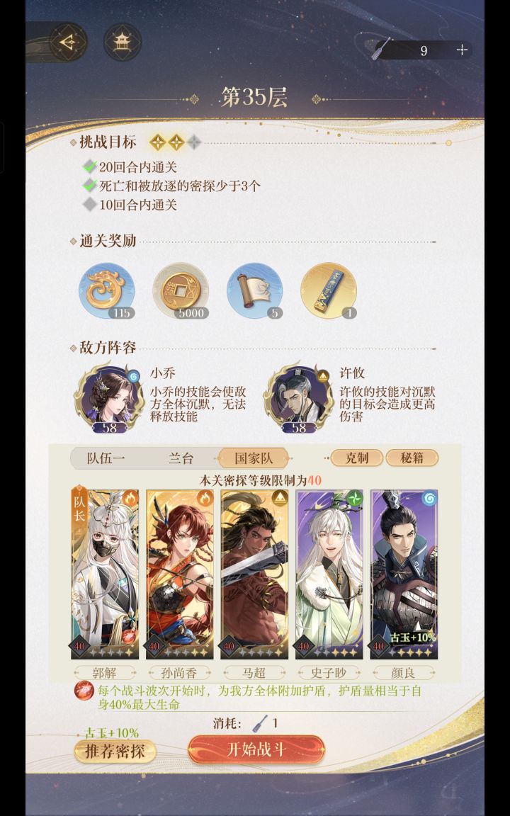 如鸢地宫35二星通关阵容参考