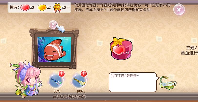 如果成功完成4个主题作画,还可以获得稀有鱼奖励哦!在完成作画后,就可以去兑换奖励啦!