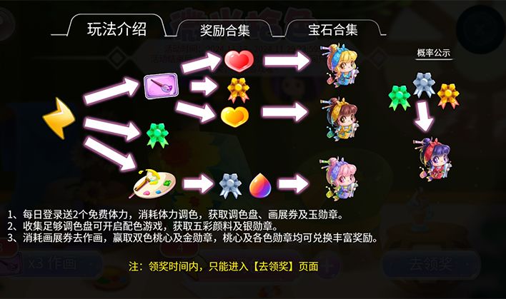 1、本活动分为三部分:调色、作画、奖励兑换;