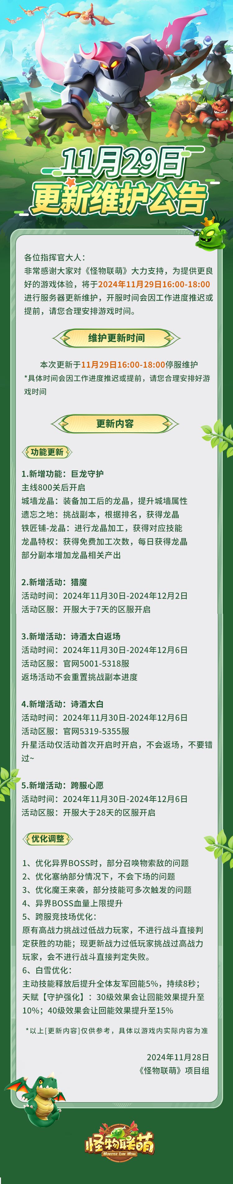 11月29日更新维护公告