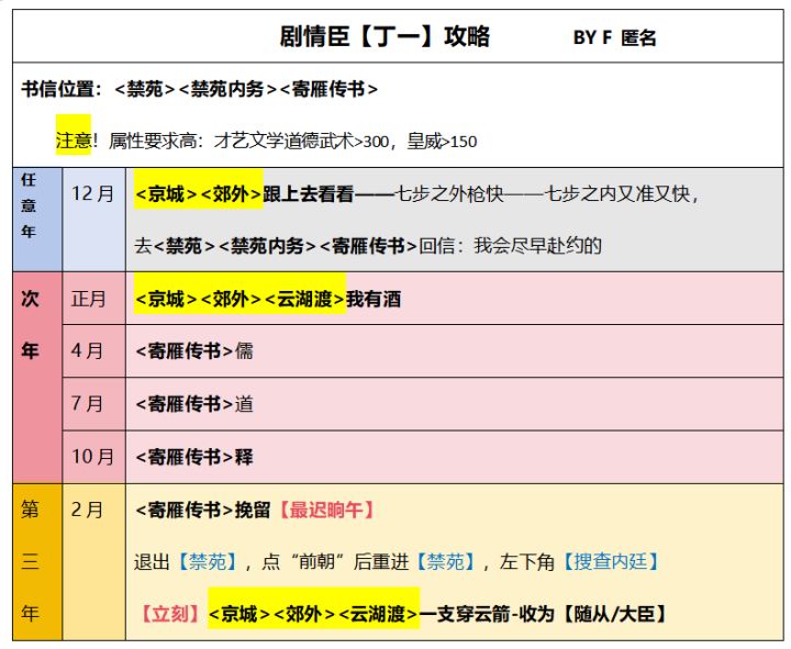 图3为属性提高攻略,这个属性要求较高,建议才艺文学道德武术都过300,皇威大于200再去攻略