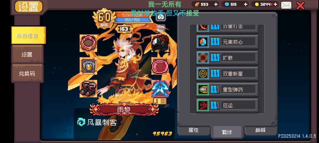 )羁绊主要是:元素调和+元素核心+分裂+双重打击+双重新星+扩散+重弹+厄运(元素调和最好在武器位上,刷出一个就可以)扩散换风暴聚集伤害更高