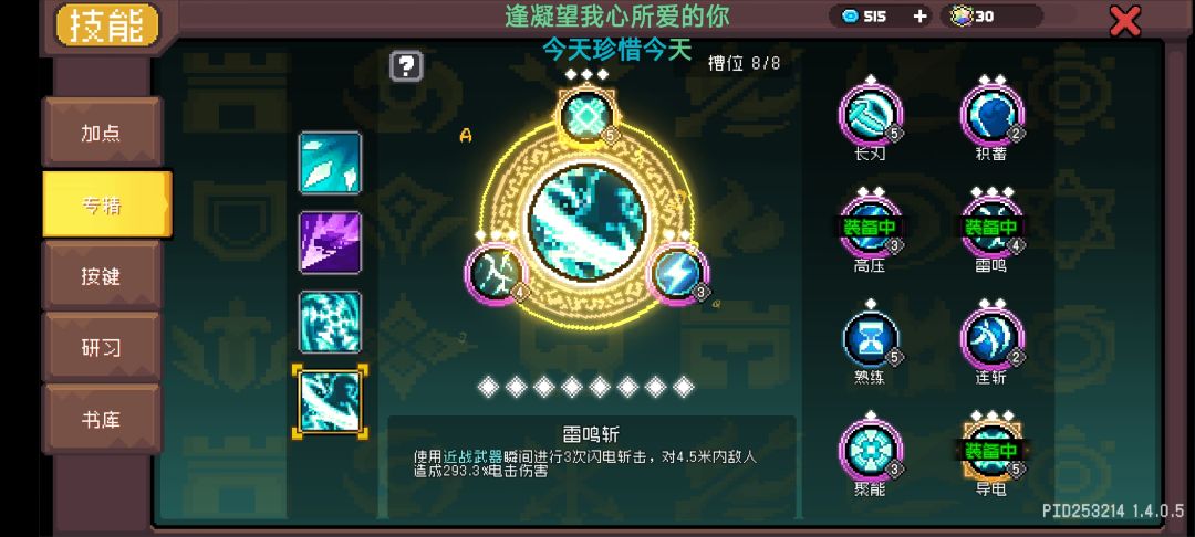 2、电能附体等级越高持续时间越久,会影响突袭和回旋镖的释放叠加,攒不出很多回旋镖,所以点1级就好