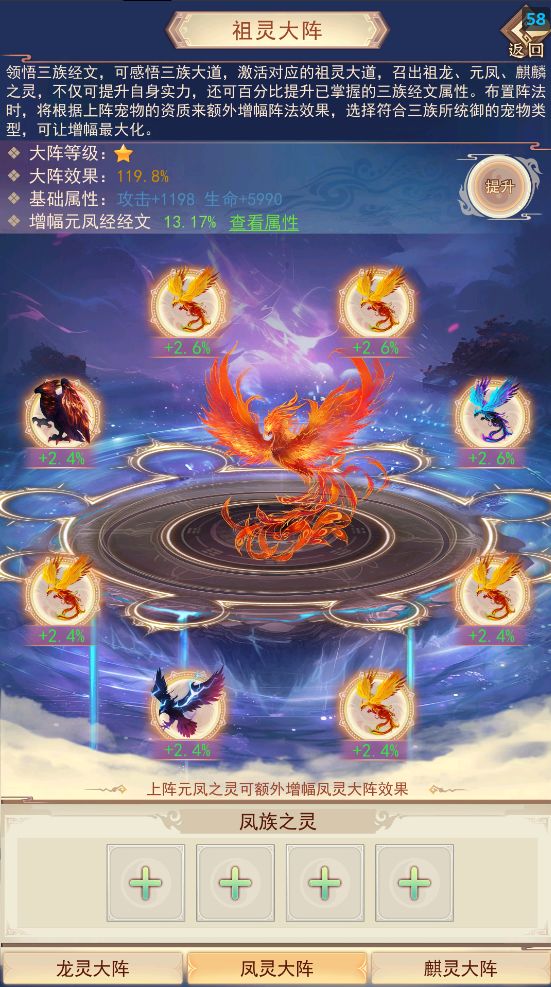 龙凤麒麟给的属性分别是防血,攻血,攻防,上阵是一星加百分之0.2,基础百分之2