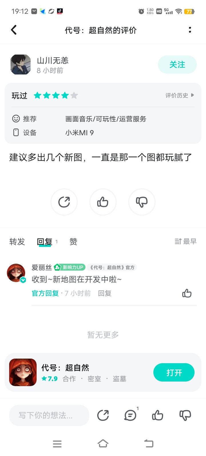 总之游戏的改进空间非常大,官方的态度也很好,会耐心回复玩家的投稿也会听取意见,是一款真正想要做好游戏的工作室,不过希望能多更新一点日常修bug或者做新图的照片,不然光说没有改动的话还是挺让人心寒的😪