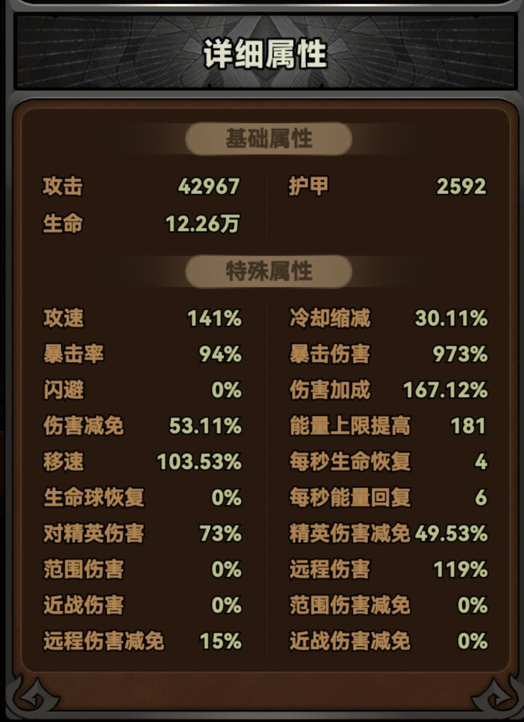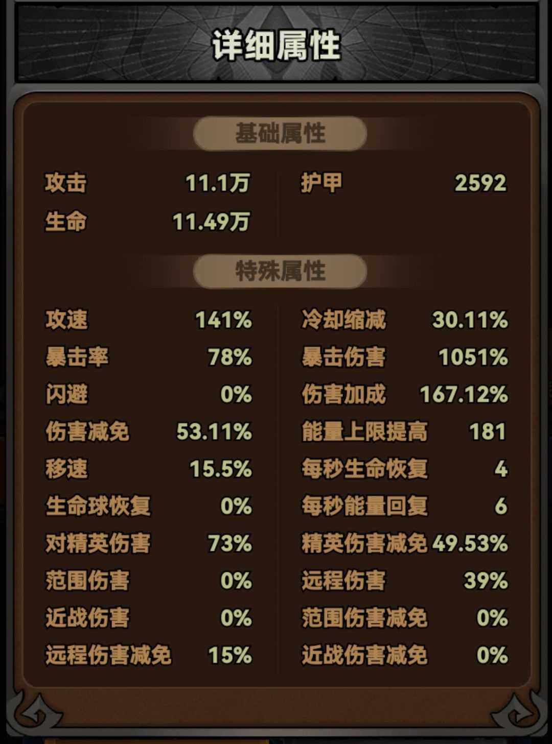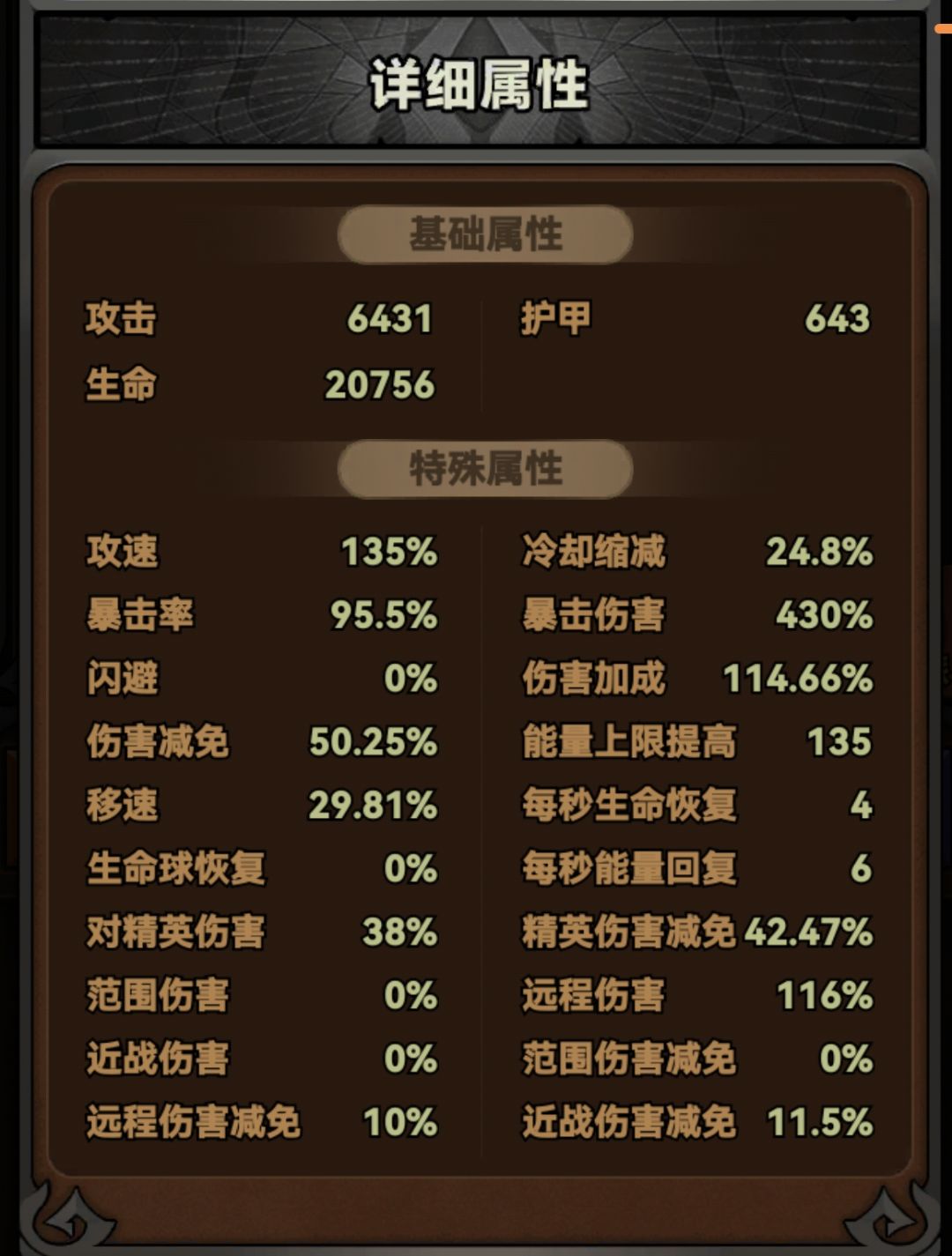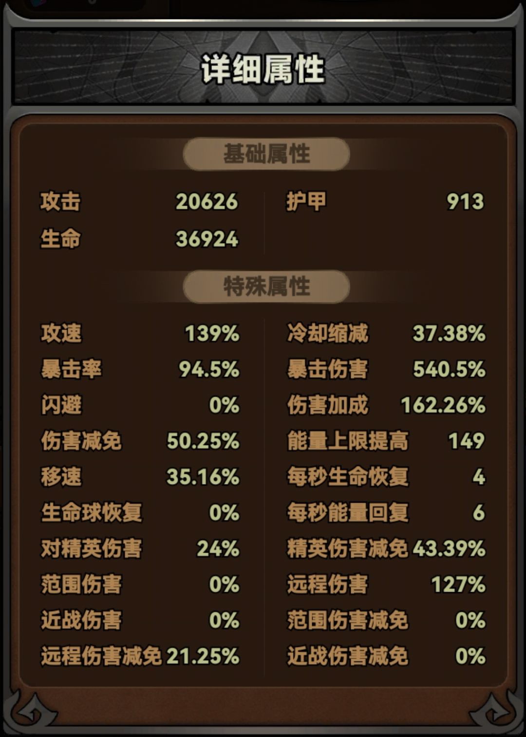 。纪律性不足,差点让老鼠减速后被史莱姆战士砍死,吓出一身冷汗。有点疲劳驾驶的感觉了,休息休息,专家模式需要保持良好的精神状态和高度的专注程度,最终属性如下:
