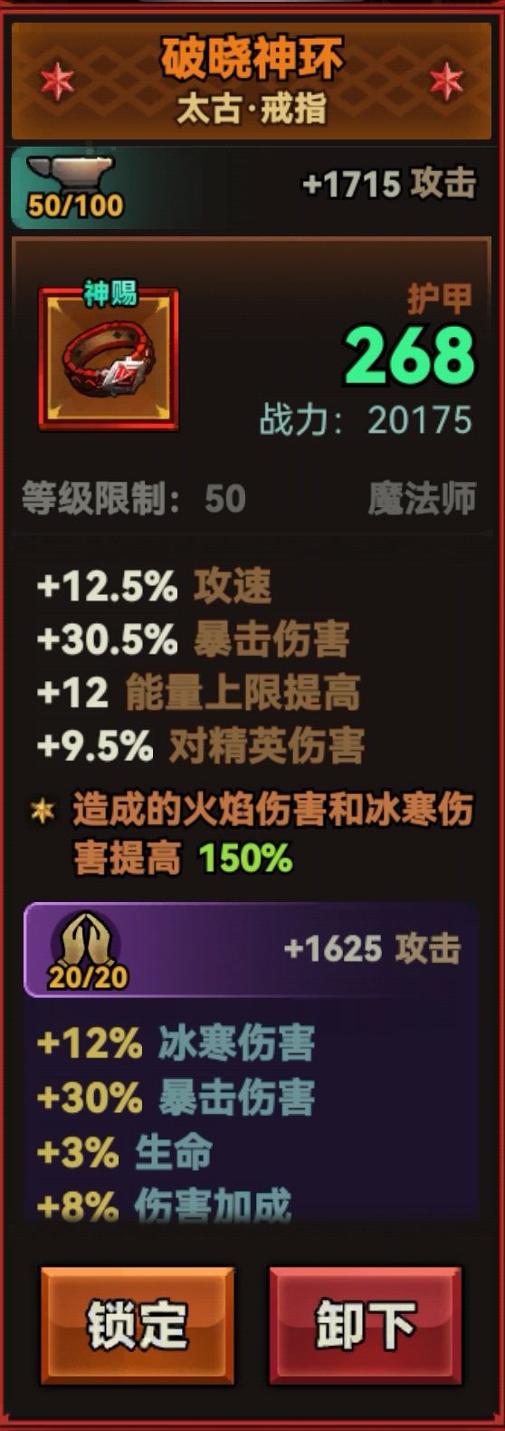 出了远古破晓,配装为冰普,装备4神赐1远古0太古