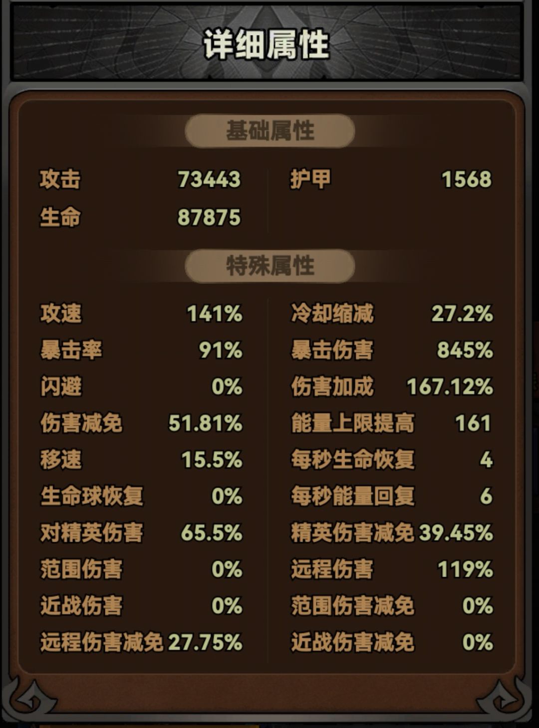 6、有事耽搁,到达地狱50,第一天挑战结束,明日再战,最终属性如下: