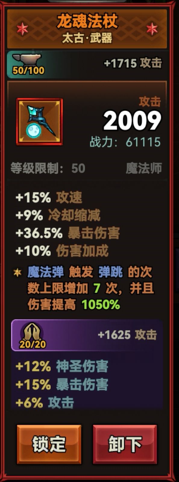 装备构成如下:圣灵套装头、衣服、裤子、鞋,武器火普祭祀、毒普冰普龙魂,副手维权或者祝祷(用一个萃取个),项链紫晖或者淬炼(用一淬一),护手阿德手或者蓄势待发(用一淬一),戒指火普冰普破晓、毒普噬魔,肩膀龙纹或者灵风(个人推荐龙纹,普攻打boss慢,但龙纹需要堆130+攻速,否则不能触发四件增伤效果,130攻速需要武器、戒指、手出30.5的攻速,或者拿宝石补,装备不满足直接用灵风)。