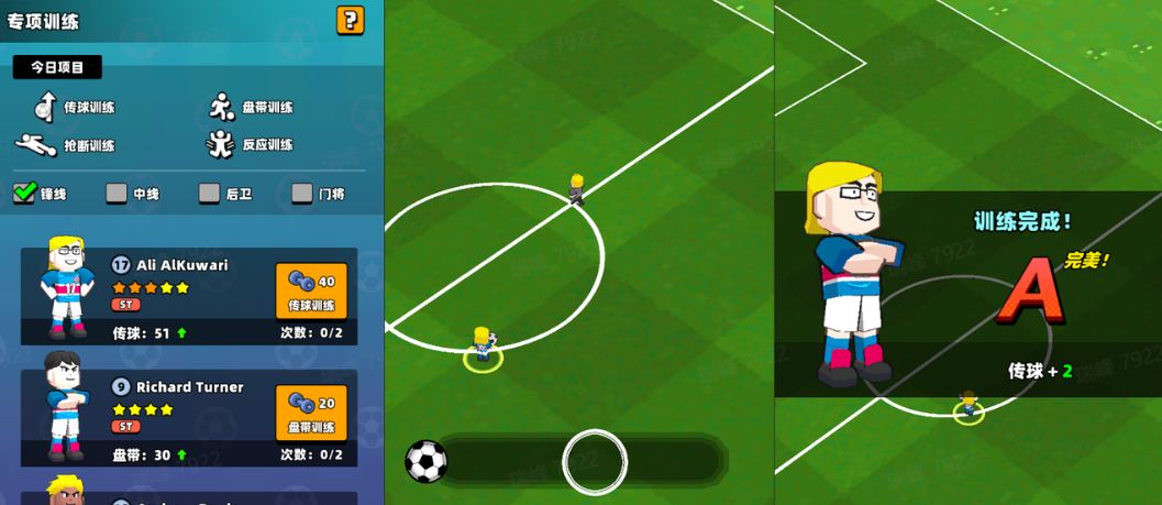 助理教练老王每天会在训练场给球员安排训练任务,只要每日能上线球员就会获得训练度!