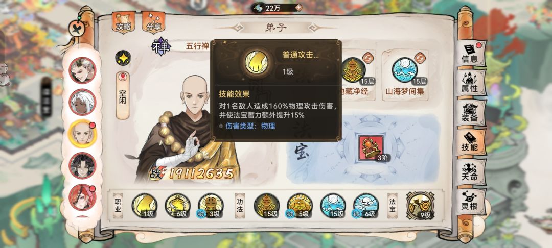 2、会心:普通攻击暴击概率提升40%,可大幅增加禅修弟子的输出伤害,使其在战斗中能更有效地对敌人造成打击。