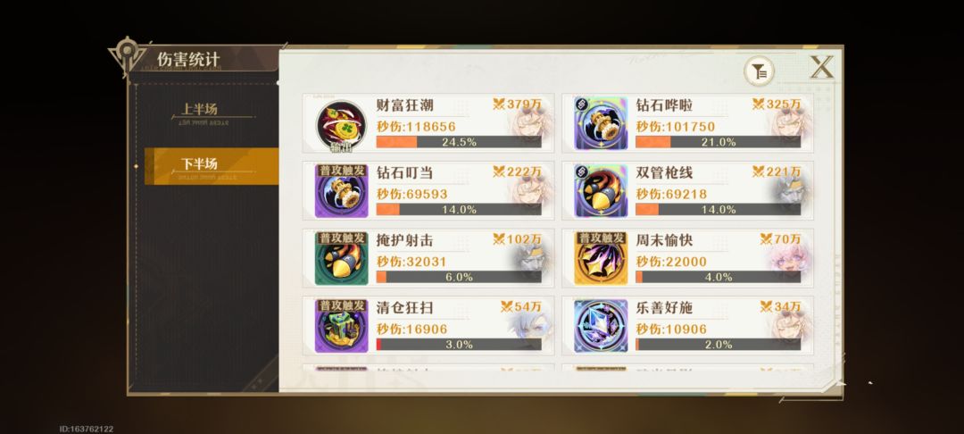 看伤害占比普攻的钻石很猛,然后硬汉榴弹和放假子弹触发及其频繁锦上添花猛地嘞~