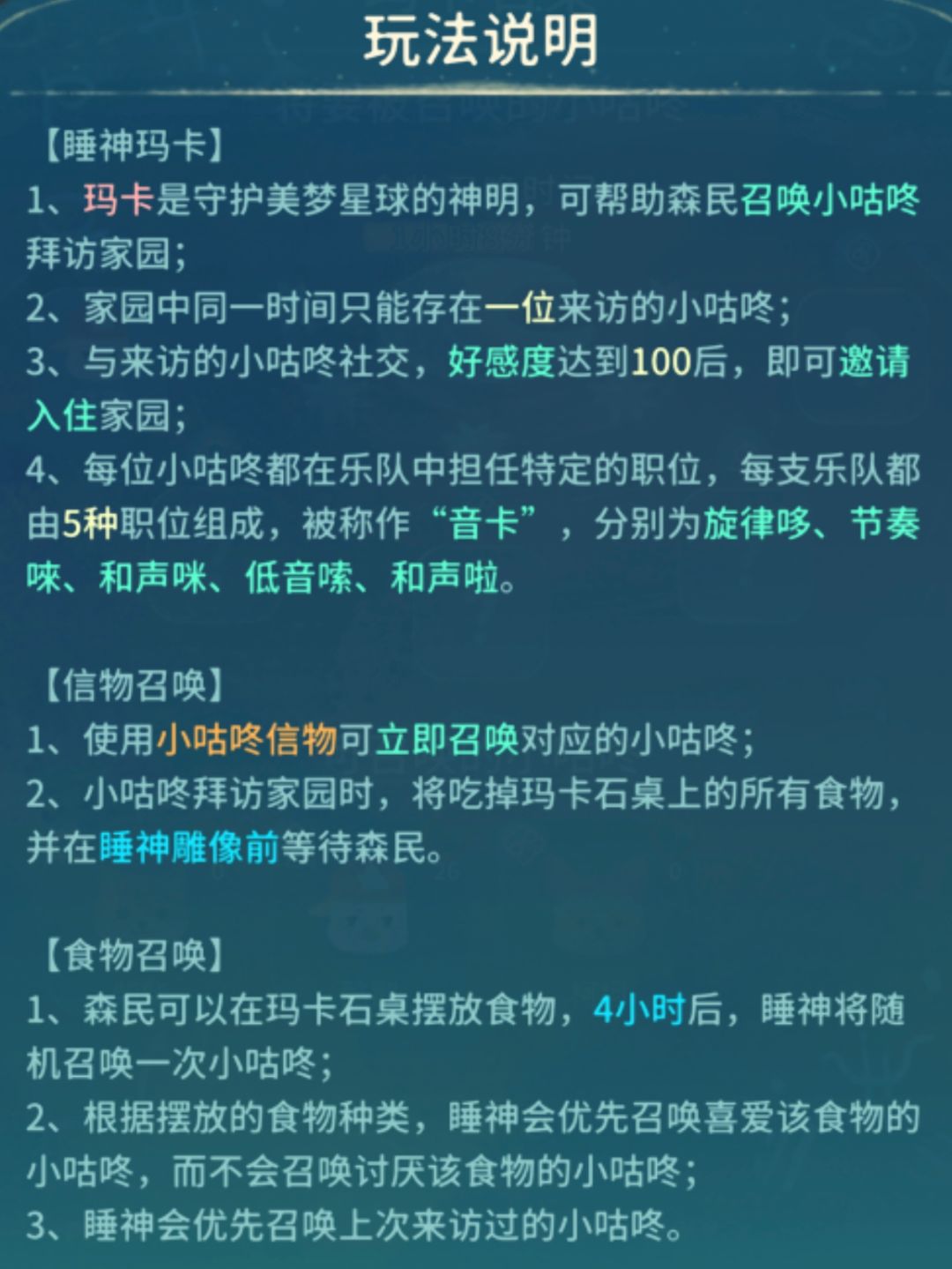 放小咕咚喜欢的食物召唤的概率更大噢!