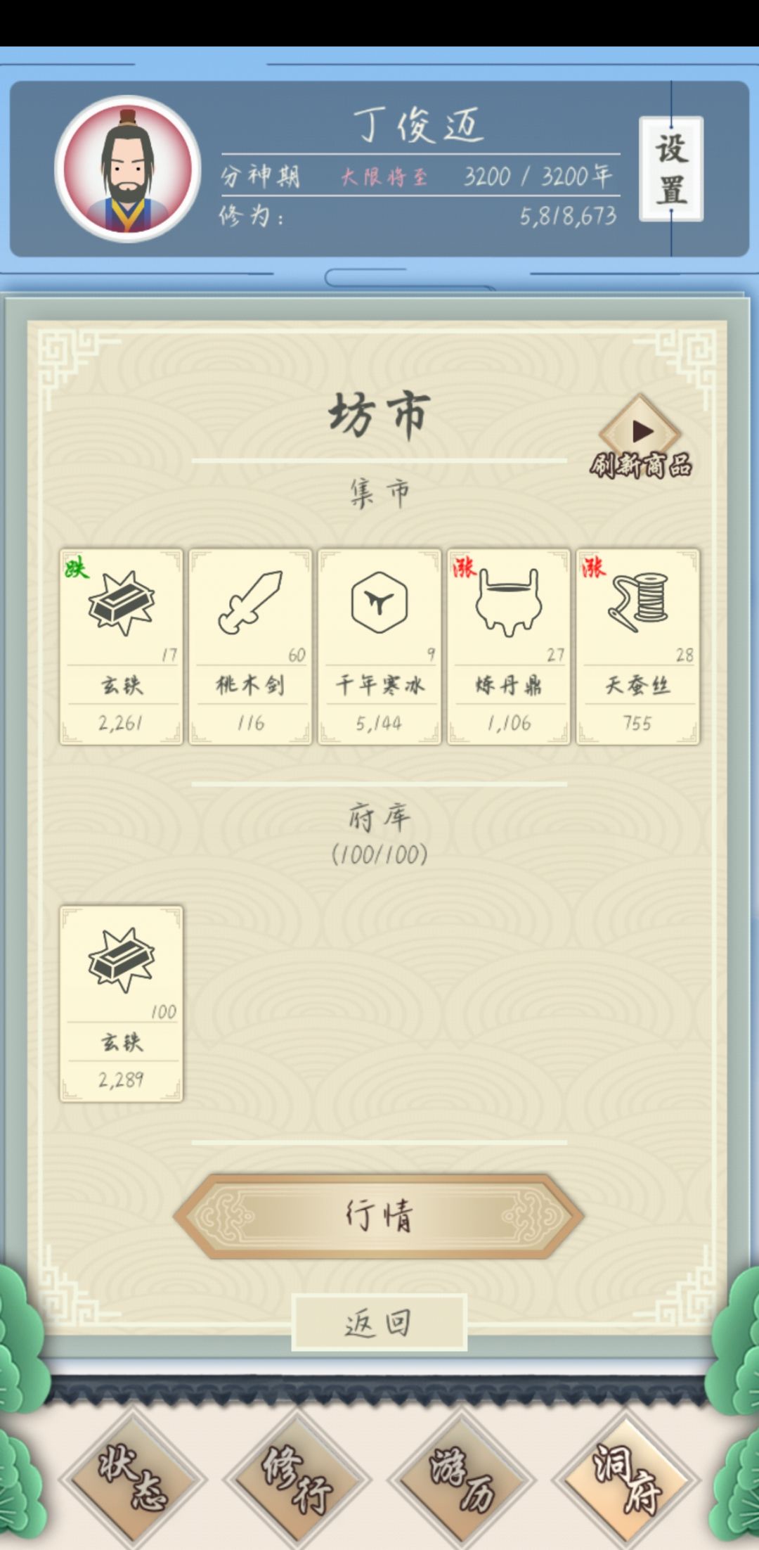 2550年存的100玄铁,到了3200年就没涨过,一直跌一直跌,中间起码千年寒冰还涨跌过一次,你这逗我呢?