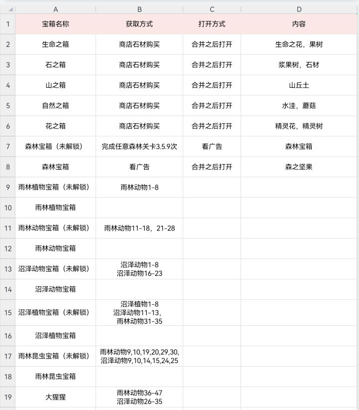 雨林宝箱和沼泽宝箱都出自“雨林&沼泽关卡索引”,索引的位置在蜗第二张地图标记的位置上,需要7级或8级的精灵进行解锁,包括冰精灵、岩石精灵、毒精灵和红宝石精灵。