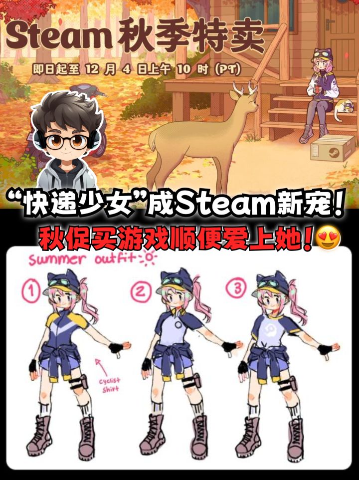 这次Steam秋季特卖引起了玩家们的集体关注,但是这个关注的点却不是在活动内容上。而是看板娘“骑车送快递的少女”的再次亮相,这次的形象更加可爱,吸引了无数玩家的目光。插画师Nemu透露,这位少女仍未命名,但她已经成为Steam促销活动的标志性角色之一!🌟